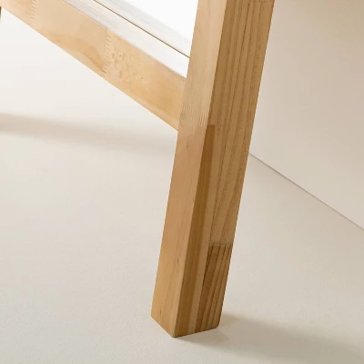 Make any room look more spacious with this 71″ Standing Wood Framed Mirror Natural from Hearth & Hand™ with Magnolia. This rectangular standing mirror brings decorative style and function to your indoor space. It features a deep wood frame for dimensional style. The recessed glass center creates the illusion of extra space, while the natural color coordinates easily with existing decor. This full-length mirror comes with anti-tip anchoring hardware for easy hanging.